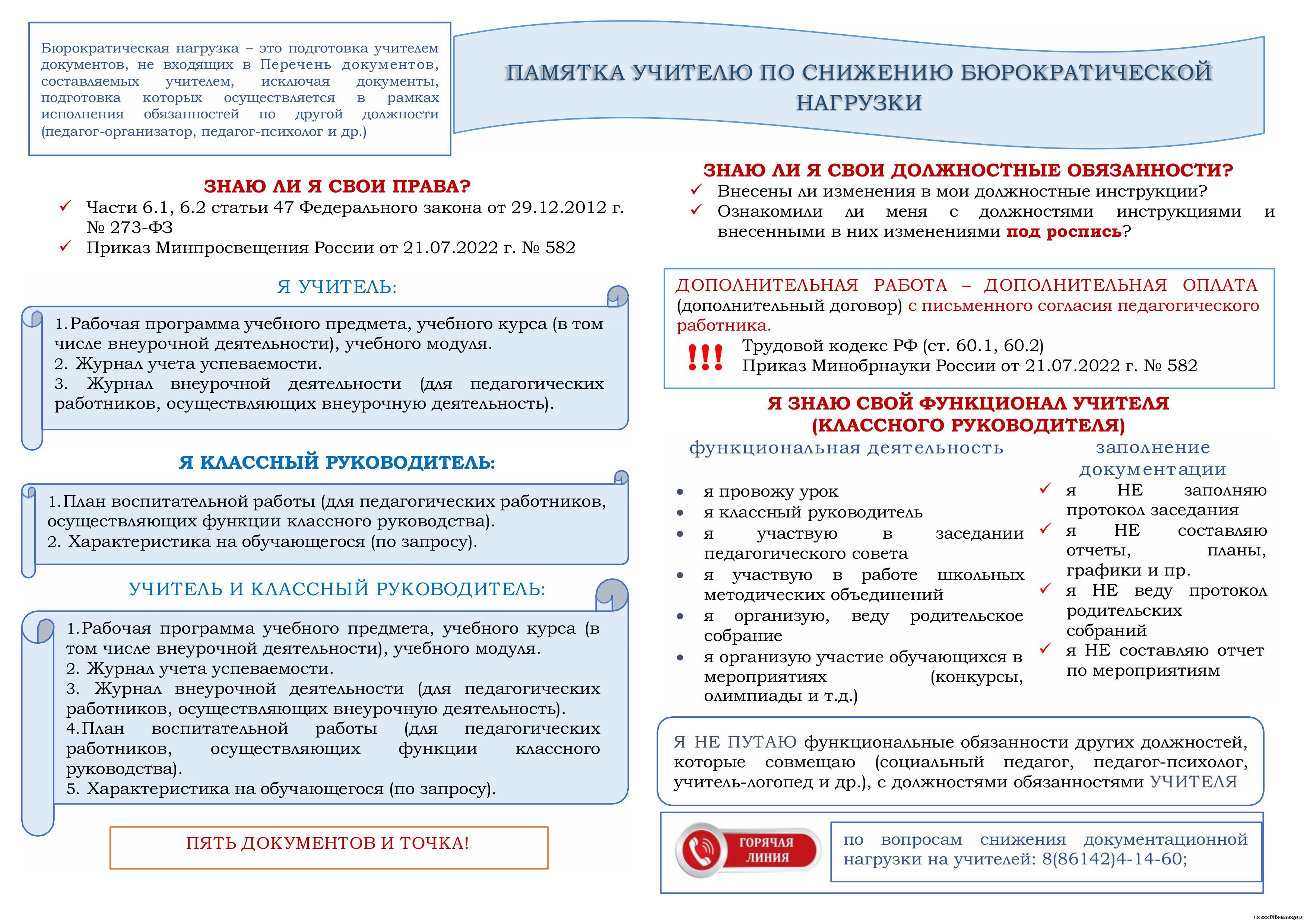 Памятка педагогическим работникам детского сада по снижению бюрократической нагрузки